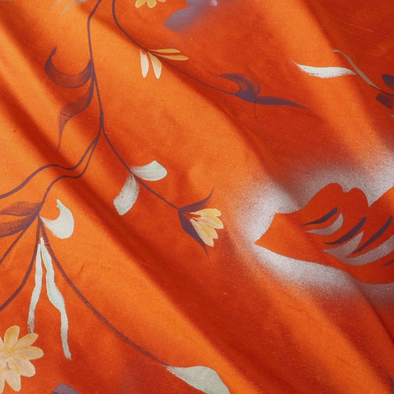 Tejido de seda natural, un Shantung estampada a mano. Una tela especial para diseños espectaculares.